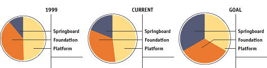 Springboard businesses represent the greatest opportunity for growth and long-term profit potential. Platform businesses generate more modest growth. Foundation businesses are in the maturity stage of the product life cycle.