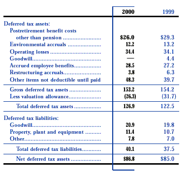 The valuation allowances at December 31, 2000 and 1999 predominantly