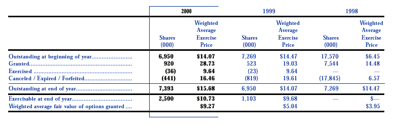 for 2000, 1999, and 1998, respectively. The fair value of