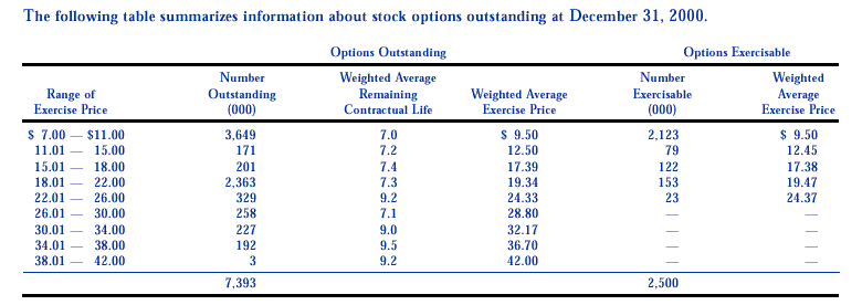 value. The exercise price of all options outstanding on April
