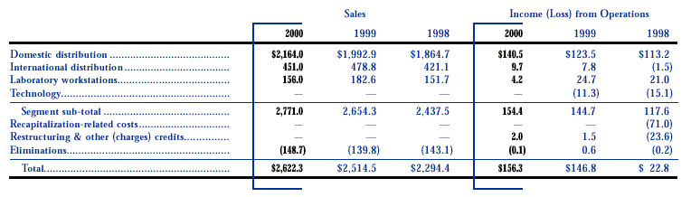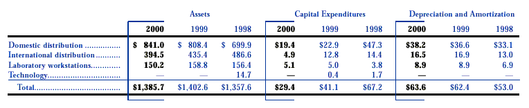 Selected business segment financial information for the years ended December 31, 2000, 1999, and 1998 is shown below