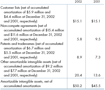 | As of December 31, 2002 and 2001, the Company had indefinite-lived