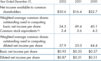 The following table sets forth basic and diluted net income