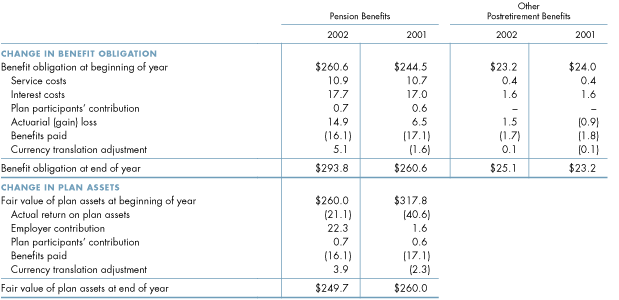 The changes in benefit obligations and plan assets were as follows