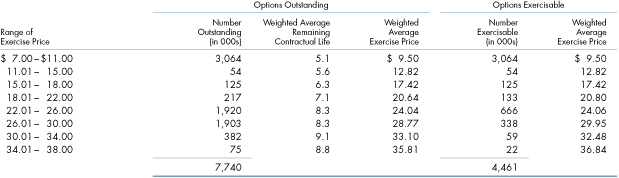 The following table summarizes information about stock options