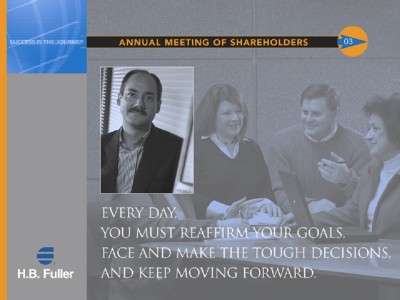 WINNING IN BUSINESS IS MENTAL AS WELL. THE RIGHT MINDSET, THE RIGHT ATTITUDE, IS IMPERATIVE. IN 2002, H.B. FULLER EMPLOYEES CONCENTRATED ON THE GOALS THAT HAD BEEN SET, AND FACED AND MADE TOUGH DECISIONS WHEN NECESSARY, MOVING THE COMPANY FORWARD TOWARD ITS PROFITABILITY TARGETS. IMPROVEMENTS WERE REALIZED IN SEVERAL KEY AREAS.