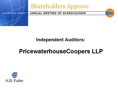 THE PROPOSAL TO RATIFY THE APPOINTMENT OF PRICEWATERHOUSECOOPERS HAS BEEN APPROVED.