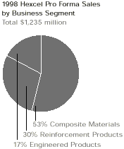 Operational Effectiveness: We are focusing on operational effectiveness through cost reduction and productivity improvement. The centerpiece of these efforts is to implement the principles of Lean Enterprise, a program aimed at identifying and eliminating costs which do not add value for our customers or shareholders. In addition, we have an ongoing effort to identify opportunities for consolidation and rationalization in our global manufacturing facilities. Another aspect of operational effectiveness is the organization of our business units. During 1998, our US, European and Pacific Rim composite materials businesses were reorganized into a single global business unit. This move mirrors the steps taken to integrate our existing structural fabrics operations with the Clark-Schwebel operations acquired in 1998 (see below). These changes reflect the reality of a global customer base, global competitors and the need for more integrated, cost effective strategies and operations. To oversee the integrated strategy, planning and execution of our global operations, we established a new Global Operations Leadership team, headed by Tad Kinne, our new chief operating officer. Product Innovation: New products can help us add value for our customers and shareholders, maintain our technological leadership and, in some cases, diversify beyond our aerospace base. For example: During 1998, we developed and patented a new retrofit package to modify overhead stowage bins to accommodate four carryon bags, rather than the usual two. Hexcel has contracts with United Airlines and Continental Airlines to retrofit these “ATIX” stowage bins and thereby provide more carryon space for passengers. With Hexcel’s system, the bins can be retrofitted overnight, after daily flights are completed. The makers of the popular Nissan Quest minivan are using Hexcel’s new energy absorbing honeycomb technology to enhance passenger safety. Hexcel components are installed in the headliner section of the vans, where a person’s head could make contact in a collision. New auto-safety standards, to be fully phased in by 2003, make this an exciting new market for Hexcel. Balance in Our Sources of Revenue: Beyond our new strategic alliance with Sika and other initiatives to expand the franchise for our materials, in September 1998 we completed the acquisition of Clark-Schwebel, the world leader in the production of fiberglass materials used to make printed circuit boards for electronics and telecommunications equipment. Since that time, we have been integrating the Clark-Schwebel operations with existing Hexcel fabrics operations, and these operations are now doing business globally under the name Hexcel Schwebel. This acquisition creates a stronger platform for Hexcel in the fast-growing electronics and telecommunications industries. Hexcel Schwebel also commands leadership positions in composite reinforcements, ballistics and construction materials. And the acquisition diversifies our business base without affecting our leadership positions in commercial aerospace, space and defense.