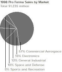While all of Hexcel’s primary markets present some short-term challenges, they continue to offer attractive growth opportunities. These markets are described in more detail beginning on page 10 of this report: Commercial Aerospace: Hexcel’s largest market offers significant long-term growth potential, despite current soft market conditions in Asia. Based on the existing global fleet of over 10,000 aircraft and announced build rates for Airbus and Boeing, anticipated market growth and replacement of older aircraft should mean at least 700 new aircraft built annually for the next several years. This compares with a record 788 aircraft in 1998 and 380 in 1995, the low point of the previous cycle. Moreover, Hexcel is well positioned with both Boeing and Airbus, and stands to benefit no matter where the demand for new aircraft originates. Space and Defense: A new generation of fighters, transports, helicopters and other military aircraft, in development during the 1990s, will enter full scale production after 2000. Hexcel materials are already included in over 50 military aircraft programs in the US and Europe, and the company is poised to capitalize on this increased demand. Hexcel materials are also used in a wide range of rockets, and we have a growing position in satellites. Postponement of some commercial satellite launches slowed demand for Hexcel’s satellite materials during 1998. However, this market is now expected to rebound, and it promises attractive growth as the commercialization of space continues. Electronics: Inventory adjustments temporarily reduced demand of printed circuit boards during the summer of 1998. In addition, excess manufacturing capacity and currency devaluations in Asia have led to intense pricing pressures for fiberglass electronic materials. Further rationalization of global capacity may be required, pending an upturn in Asian markets. However, the fundamentally strong demand for personal electronic devices, combined with Hexcel’s leading market position, offer good long-term potential. Recreation and General Industrial: Developing new applications for our materials is an important driver of future growth for Hexcel. While many of these opportunities may take time to mature, they can further diversify our sources of revenue. During 1998 we established a strategic alliance with Sika Finanz AG, a worldwide leader in construction chemicals and structural adhesives, to develop and market composite systems for the construction industry. We achieved small but significant breakthroughs in the automotive and long-haul trucking industries, and we expanded the use of composite materials in high-speed trains and ferries and mass transit trains. We also enjoyed growing sales of composite materials for wind energy systems in Europe, and continued to supply materials to selected segments of the recreation market.