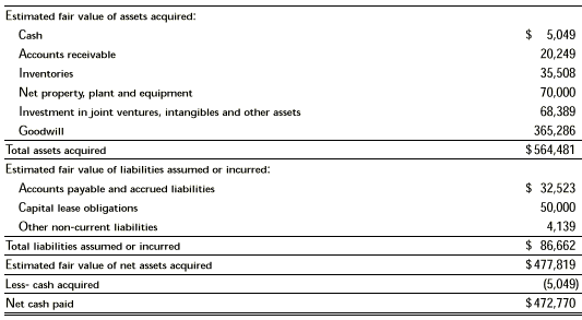 All of the above acquisitions were accounted for under the purchase method of accounting. Accordingly, the accompanying consolidated balance sheets, statements of operations, stockholders’ equity, and cash flows include the financial position, results of operations and cash flows of the businesses acquired as of such dates and for such periods that these businesses were owned by Hexcel. Estimates and Assumptions