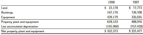 Non-cash items consist of asset write-downs and currency translation effects. Accrued business consolidation costs of $8,202 and $12,173 as of December 31, 1998 and 1997, respectively, were included in “other accrued liabilities” in the accompanying consolidated balance sheets. Business consolidation activities were financed with operating cash flows and borrowings under the Senior and Revolving Credit Facilities. In addition, in 1997, the company received $8,500 of net proceeds, which approximated book value, from the sale of its Anaheim, California facility.