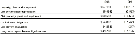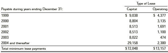 N o t e 8 - L e a s i n g A r r a n g e m e n t s Assets, accumulated depreciation and related liability balances under capital leasing arrangements as of December 31, 1998 and 1997, were: