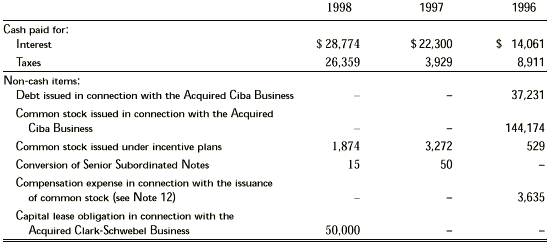 N o t e 1 5 – S u p p l e m e n t a l C a s h F l o w I n f o r m a t i o n Supplemental cash flow information, including non-cash financing and investing activities, for the years ended December 31, 1998, 1997 and 1996, consist of the following: