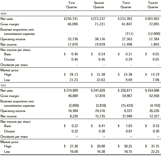 N o t e 17 - Q u a r t e r l y F i n a n c i a l D a t a ( U n a u d i t e d ) Quarterly financial data for the years ended December 31, 1998 and 1997, were: