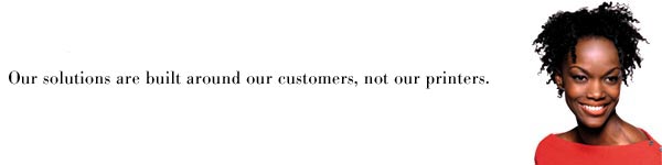 Solutions here. Our solutions are built around our customers, not our printers. Solutions everywhere.