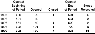 We do not consider interest income and expense arising from our financing activities at the corporate level in determining segment profitability. The increases in interest income in 1999 and 1998 resulted from improved operating cash flows in 1998, which yielded higher average cash balances throughout 1998 and most of 1999. Pursuant to our Board of Directors authorizing stock repurchases in August 1999 of up to $500 million, we purchased 46.7 million shares of our stock at a total cost of $500 million plus commissions during the last half of 1999. As a result, our cash balances have declined, and we expect a proportional impact on our interest income in future periods. In January 2000 and March 2000, our Board authorized additional stock repurchases of up to $200 million. This will further reduce our cash balances in the future. The majority of our interest expense is fixed in nature and relates to our convertible, subordinated debt. Additionally, during 1999, we entered into a number of capital leases, primarily related to new point-of-sale equipment in our stores. This has resulted in increased interest expense, which may continue in future years. In late 1999, we began borrowing against our yen-denominated loan facility to finance our expansion in Japan. Because the interest rate we are currently paying on our yen borrowings is between 1% and 2%, we expect that the effect of these borrowings on our future interest expense will be negligible. See Liquidity and Capital Resources. Our net miscellaneous expense consists of equity in the earnings (losses) of our joint venture investments, royalty and franchise income that we generate from licensing and franchise agreements and the amortization of goodwill. All of our equity investments involve operations outside of the United States and Canada, and our equity in the earnings (losses) of these operations is included in determining the profitability of our International Division. The decrease in net miscellaneous expense in 1999 is primarily attributable to the consolidation of our French and Japanese retail operations beginning in the fourth quarter of 1998 and second quarter of 1999, respectively, when we purchased the remaining 50% interest from our joint venture partners. Prior to that consolidation, we recorded equity losses related to the start-up of those operations. During 1998, we increased our ownership share in our operations in Thailand to 80%. Accordingly, the results of our Thai operations have been consolidated from the date of the ownership increase. See Store Closure and Relocation Costs for a discussion of our decision to subsequently sell our ownership interest in the Thai business in November 1999. In 1999, our remaining joint venture operations in Mexico and Israel were profitable. Through our joint ventures that are accounted for using the equity method, we opened 14 locations in 1999, 40 locations in 1998 and 15 locations in 1997 that required start-up costs. Income Taxes
