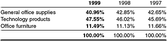 Our merchandise mix remained relatively consistent between 1997 and 1998, with a slight shift toward the sale of technology products (i.e., computers, business machines and related supplies), driven primarily by growth in the business machine supplies category. In 1999, aggressive promotional programs offering discounts on certain hardware and software when customers purchased Internet service further expanded the sales of technology products. We have also continued to focus on consultative selling of technology products in our stores. Stores Sales of computer products (i.e., computers, printers, peripherals, software and related supplies) in our stores, with increases of 23% in 1999 and 7% in 1998, contributed significantly to the sales increases in our Stores Division. Growth in units sold of technology products greatly exceeded declines in average selling prices for both years, particularly in computer hardware. Sales of business machine supplies, which are also significant to our Stores product mix, increased 17% in 1999 and 22% in 1998. In late 1999, the SEC released accounting guidance which dictates that retailers named as the legal obligor in an extended warranty service contract must recognize the revenues and direct expenses associated with the sale of such warranties over the service period of the contract, regardless of economic risk. In addition, retailers that are not the legal obligor in a warranty service contract must record their revenues net of direct expenses. We sell extended service plans, administered by an unrelated third party, to customers in our Stores Division. All performance obligations and risk of loss associated with such contracts are economically transferred to our administrator, which insures itself against any liabilities arising under such contracts, at the time the contracts are sold to the customer. While our service plans typically extended over a period of one to four years, we previously recognized the gross revenues and direct expenses from the sale of these contracts immediately. Because we were named as the legal obligor in the majority of the states in which we sell these contracts, we modified our accounting to recognize revenue for warranty service contract sales in those states over the service period. In those states where we are not the legal obligor, we modified our accounting to recognize warranty revenues net of the direct costs. We have given effect to this modification to our accounting in our 1999 financial statements by reducing our sales and cost of goods sold by (1) the cumulative amounts we need to defer and recognize in future periods and (2) the cumulative amounts we need to net against our sales. We are modifying the terms of our extended service contracts in states where we are not legally obligated to serve as the obligor to substantially alleviate the deferral of our warranty revenues and costs in future years. This adjustment, which only impacted our Stores Division, resulted in a reduction in our 1999 gross profit of $15.8 million, or $0.03 per share. BSG We also experienced growth in our Viking brand catalog sales in both years, driven by a more targeted approach to catalog promotions. We have achieved comparatively smaller increases in our Office Depot brand catalog sales from increased circulation of our direct mail catalogs. Sales of business machine supplies, which are significant to our BSG product mix, increased 26% in 1999 and 55% in 1998. International