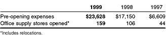 Our pre-opening expenses consist principally of personnel, property and advertising expenses incurred in opening or relocating stores in our Stores Division. We typically incur these expenses during a six-week period prior to the store opening. Because we expense these items as they are incurred, the amount of pre-opening expenses we incur each year is generally proportional to the number of new stores we open during the period. Our pre-opening expenses also include, to a lesser extent, expenses incurred to open or relocate facilities in our Business Services Group and our International Division. In 1999, our pre-opening expenses approximated $155,000 per domestic office supply store and $80,000 per international office supply store. The amount for our domestic stores has increased from our historical average of $125,000 because we acquired a group of stores from another retailer, which generated higher occupancy costs during an extended pre-opening period. Our cost to open a new CSC varies significantly with the size and location of the facility. Historically, we have incurred up to $1,750,000 to open a domestic or international CSC. General and Administrative Expenses