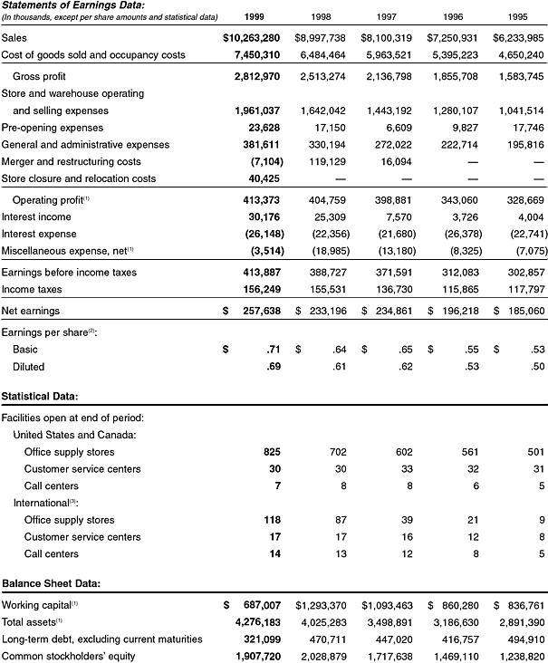 Earnings per share previously reported for 1995 through 1998 have been reinstated to reflect the three-for-two stock split declared on February 24, 1999. |