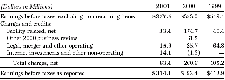 See Note B of the Notes to Consolidated Financial Statements for additional discussion and line item presentation of the 2000 charges and credits. |