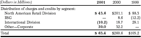 After considering the effect of income taxes, the impact of these net charges on our net earnings was $41.0 million, $172.9 million and $69.3 million for 2001, 2000, and 1999, respectively. The components of segment operating profit presented below include the charges and credits outlined above. Additionally, certain expenses, primarily payroll-related, previously recorded in total company general and administrative expenses have been reclassified to determine segment operating profit beginning in 2001. Prior year amounts reflect the reclassification of these costs.