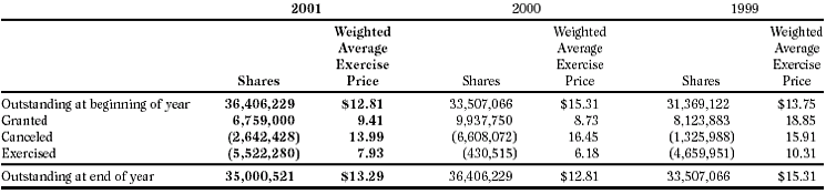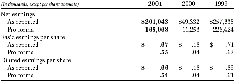 2001, 2000 and 1999, respectively. No other compensation costs have