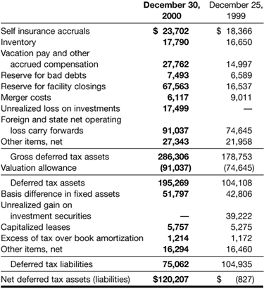 As of December 30, 2000, we had approximately $143 million of foreign and $419 million of state net operating loss carry-forwards. Of these carryforwards, $38 million will expire in 2001 and the balance will expire between 2002 and 2020. The valuation allowance has been developed to reduce our deferred tax asset to an amount that is more likely than not to be realized, and is based upon the uncertainty of the realization of certain foreign and state deferred tax assets relating to net operating loss carryforwards. The following is a reconciliation of income taxes at the Federal statutory rate of 35% to our provision for income taxes: