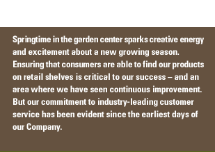 Today, ScottsMiracle-Gro believes it is the lowest cost producer of lawn fertilizer in the marketplace. That fact, coupled with our commitment to improving our customer service at all levels, provides us with a competitive advantage that will remain critical to our ongoing success.