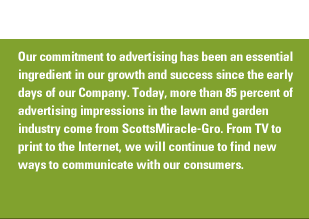 No matter what medium we use, our communications with the consumer have created a competitive advantage for ScottsMiracle-Gro – one that we intend to continue to improve upon and leverage for further growth.