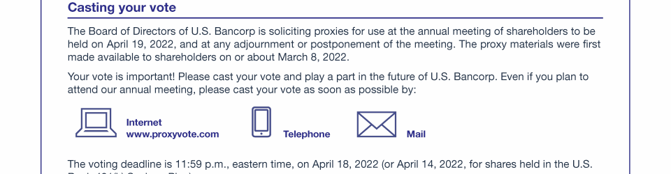 - Communicating with U.S. Bancorp's Board of Directors