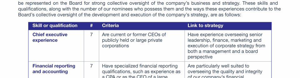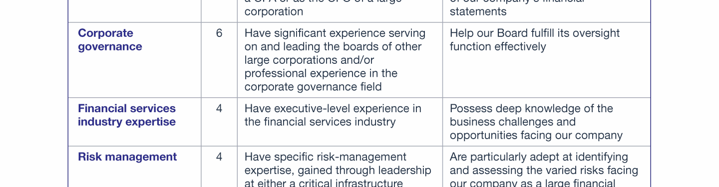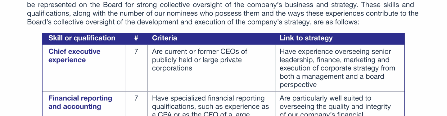 Review our director nominees' biographies, skills/qualifications, committees, and more in our interactive