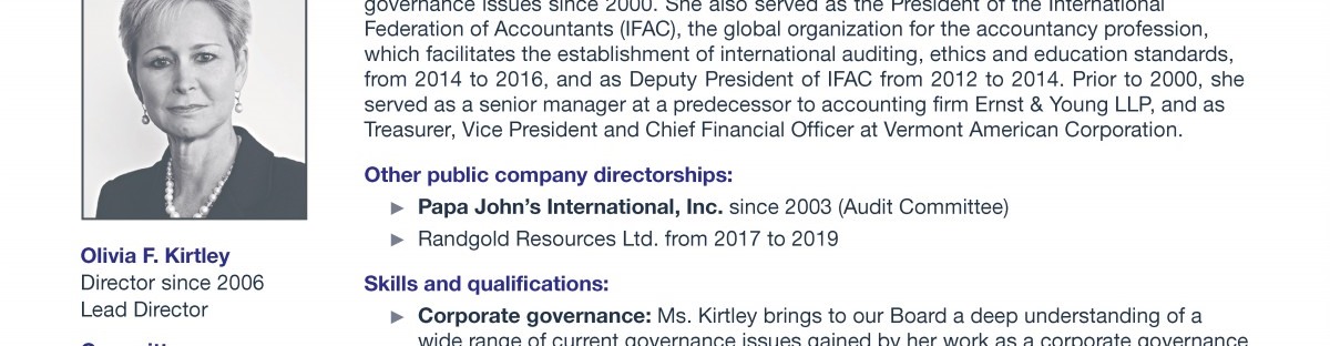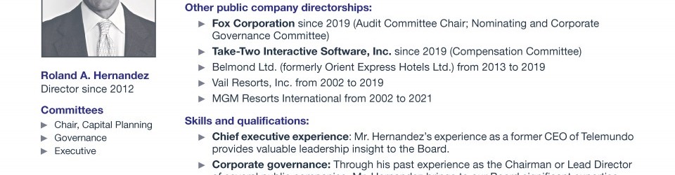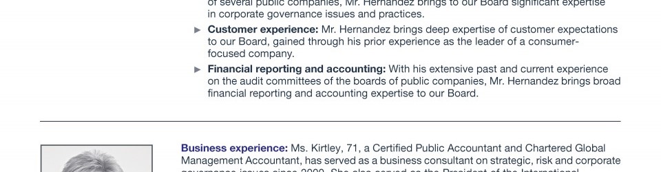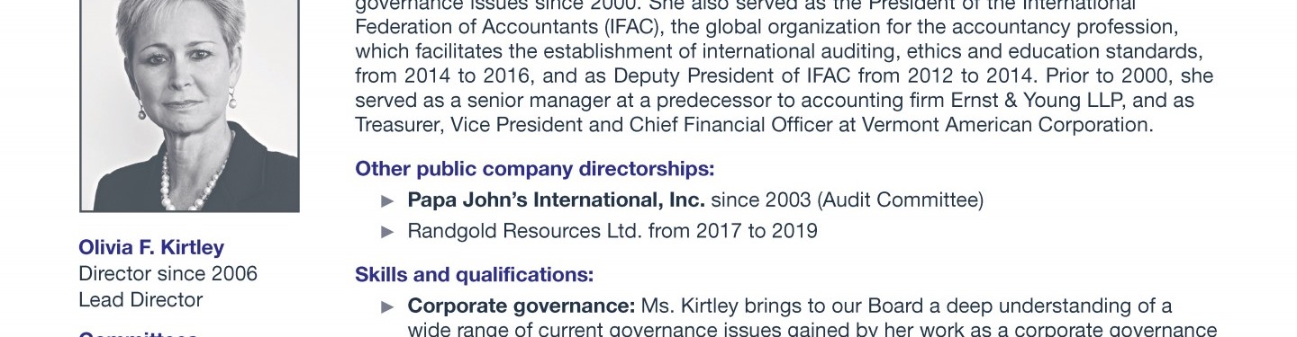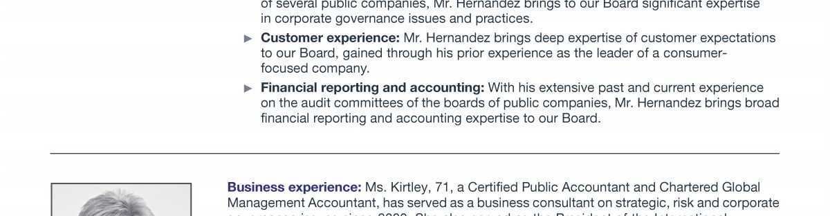 Review our director nominees' biographies, skills/qualifications, committees, and more in our interactive