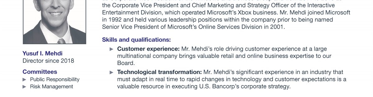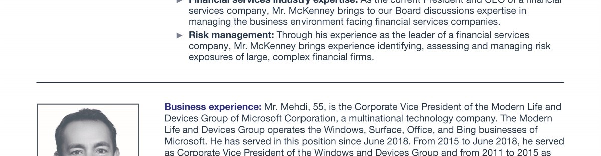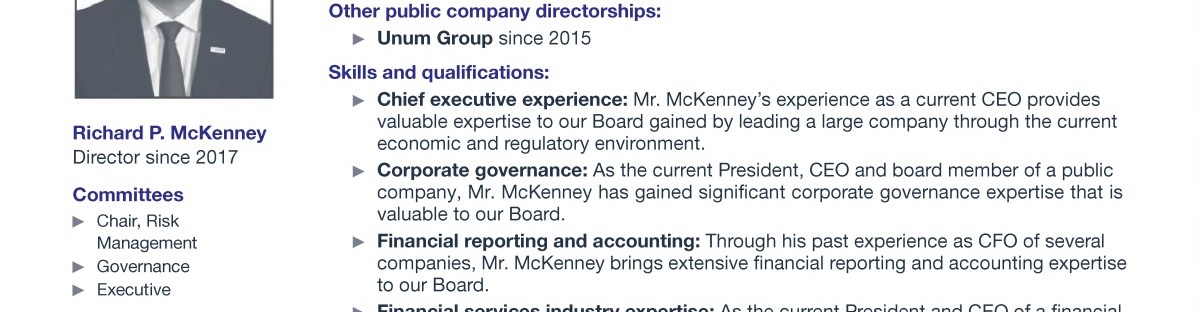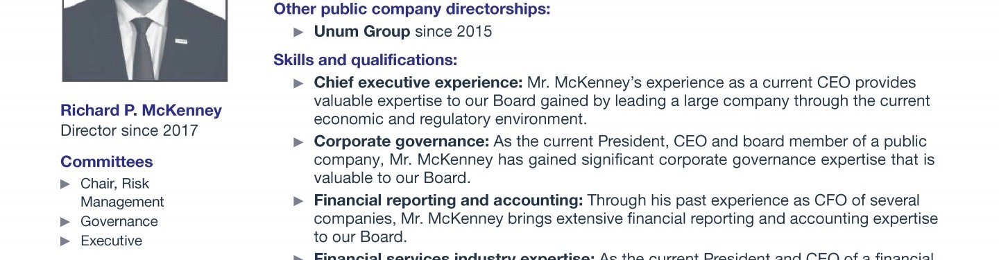 Review our director nominees' biographies, skills/qualifications, committees, and more in our interactive
