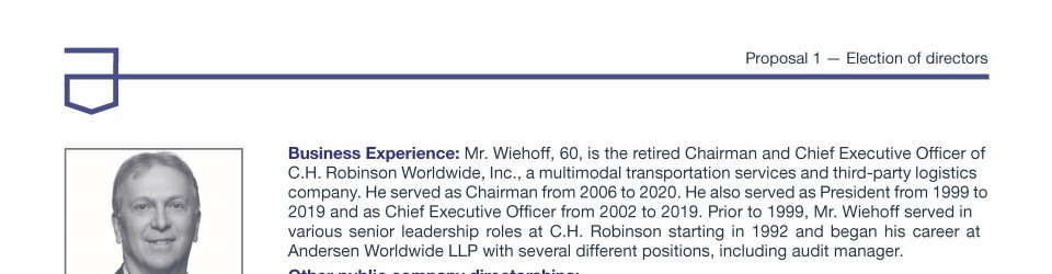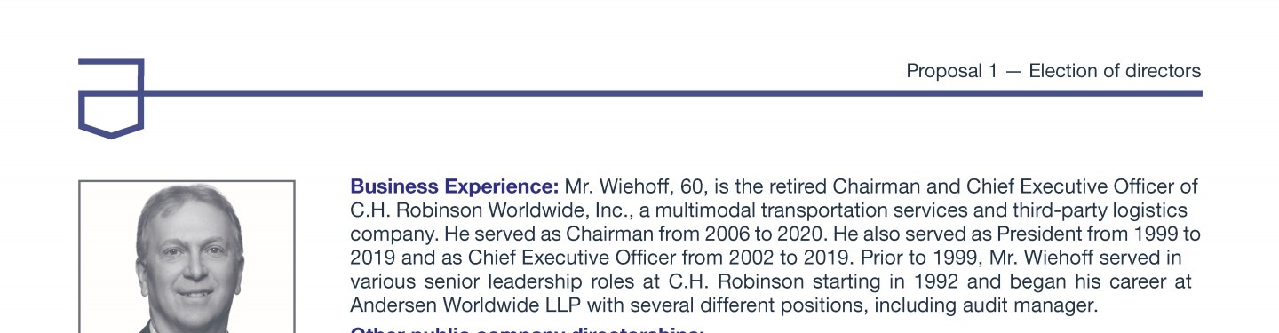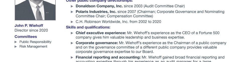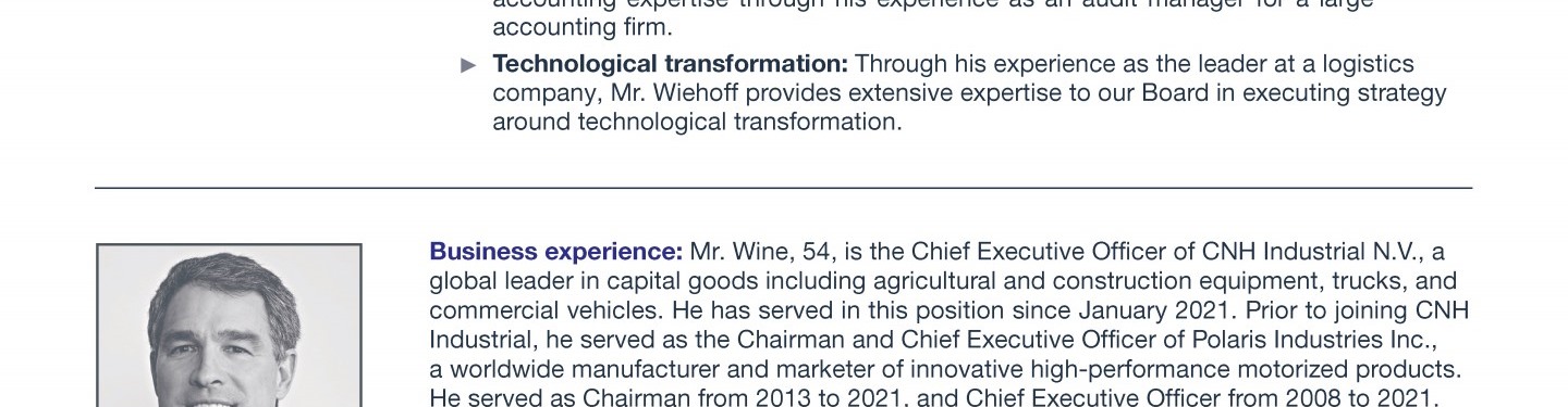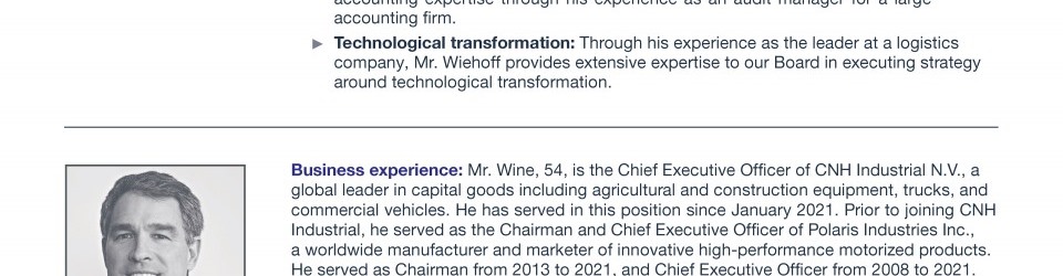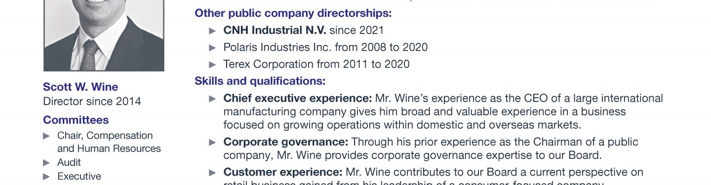 Review our director nominees' biographies, skills/qualifications, committees, and more in our interactive