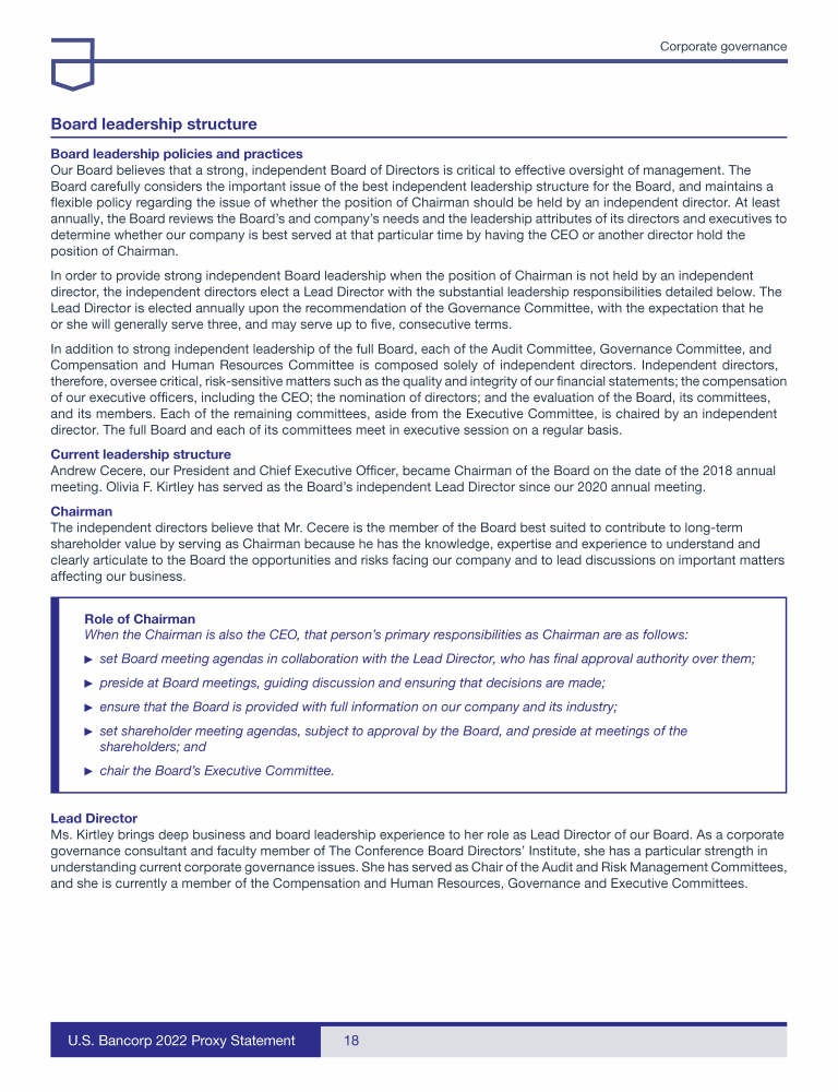 - Communicating with U.S. Bancorp's Board of Directors