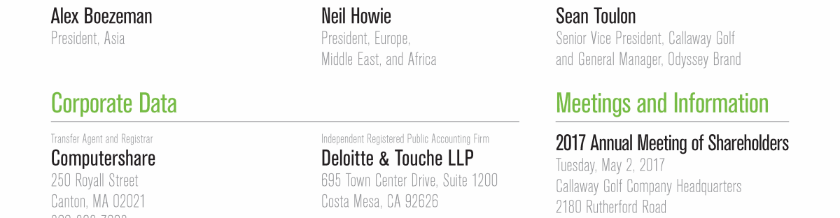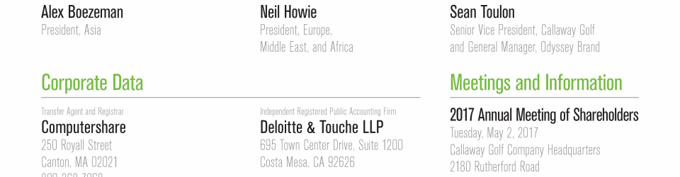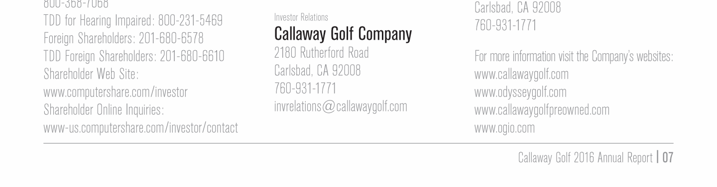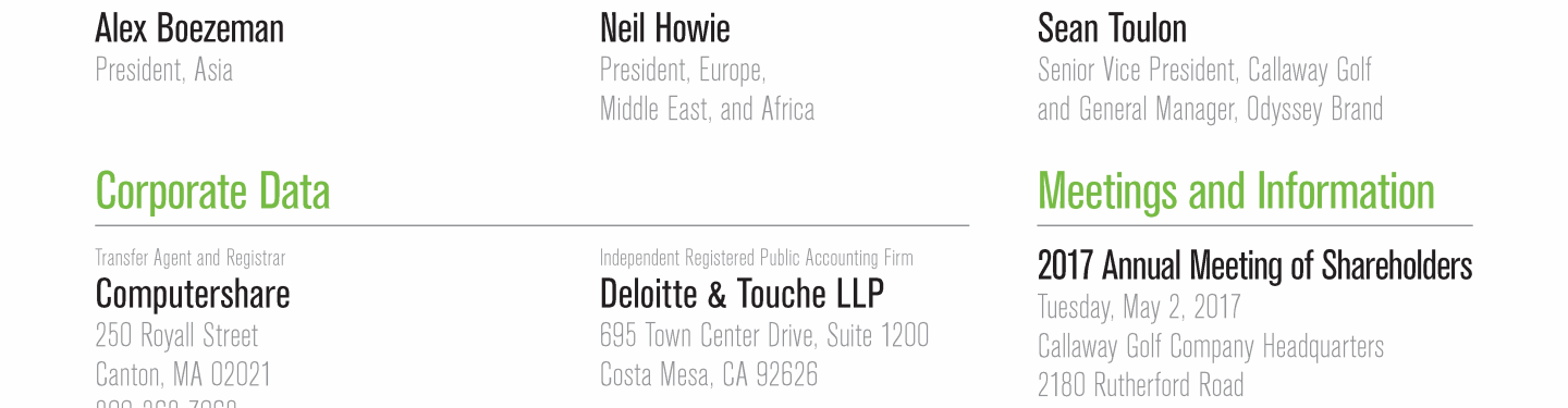 Click here to go to www.computershare.com/investor Click here to go to www-us.computershare.com/investor/contact Click here to send a message to invrelations@callawaygolf.com Click here to go to www.callawaygolf.com Click here to go to www.odysseygolf.com Click here to go to www.callawaygolfpreowned.com Click here to go to www.ogio.com Click here to go to www.computershare.com/investor Click here to go to www-us.computershare.com/investor/contact Click here to send a message to invrelations@callawaygolf.com Click here to go to www.callawaygolf.com Click here to go to www.odysseygolf.com Click here to go to www.callawaygolfpreowned.com Click here to go to www.ogio.com Click here to go to www.computershare.com/investor Click here to go to www-us.computershare.com/investor/contact Click here to send a message to invrelations@callawaygolf.com Click here to go to www.callawaygolf.com Click here to go to www.odysseygolf.com Click here to go to www.callawaygolfpreowned.com Click here to go to www.ogio.com Click here to go to www.computershare.com/investor Click here to go to www-us.computershare.com/investor/contact Click here to send a message to invrelations@callawaygolf.com Click here to go to www.callawaygolf.com Click here to go to www.odysseygolf.com Click here to go to www.callawaygolfpreowned.com Click here to go to www.ogio.com Click here to go to www.computershare.com/investor Click here to go to www-us.computershare.com/investor/contact Click here to send a message to invrelations@callawaygolf.com Click here to go to www.callawaygolf.com Click here to go to www.odysseygolf.com Click here to go to www.callawaygolfpreowned.com Click here to go to www.ogio.com