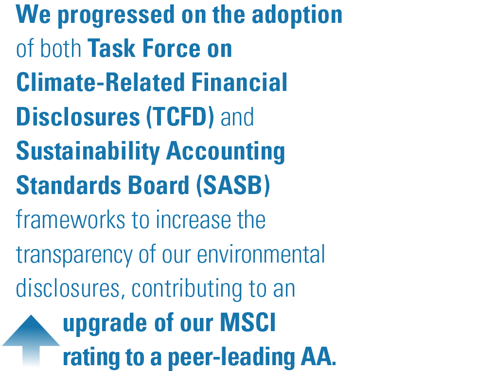 The second is through the contributions of our engaged employees, who are attuned and dedicated to their local environments. Our local operating units have been tasked with developing and implementing meaningful local sustainability plans, and today we have initiatives in 95 countries. Aligning with national and customer priorities, our local teams bring projects and technology that make a relevant impact to the people and the environment around them.