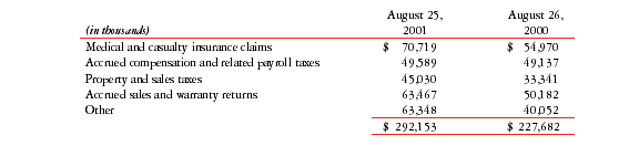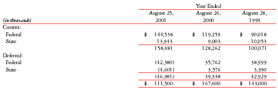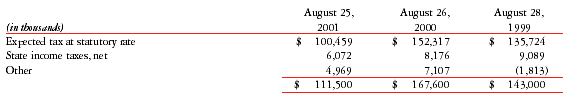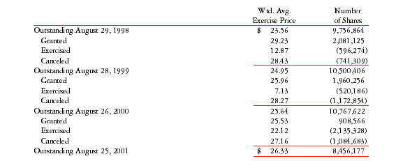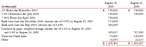 at August 25, 2001, 8% at August 26, 2000, and 7% at August 28, 1999.