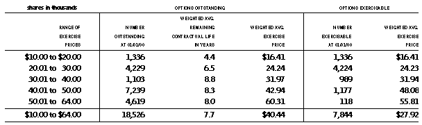 The following table summarizes information about stock options outstanding at January 1, 2000: