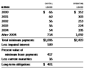 NOTE >7 > LEASE AND SERVICE AGREEMENTS The Company leases certain stores, office facilities, warehouses, computers and transportation equipment. Operating and capital lease obligations are based upon contractual minimum rates and, for certain stores, amounts in excess of these minimum rates are payable based upon specified percentages of sales. Contingent rent is accrued over the lease term, provided that the achievement of the specified sales level that triggers the contingent rental is probable. Certain leases include renewal or purchase options. Operating lease rentals were $399, $431 and $439 million, including contingent rentals of $52, $55 and $57 million in 1999, 1998 and 1997, respectively. Minimum lease obligations, excluding taxes, insurance and other expenses payable directly by the Company, for leases in effect as of January 1, 2000, are as follows: