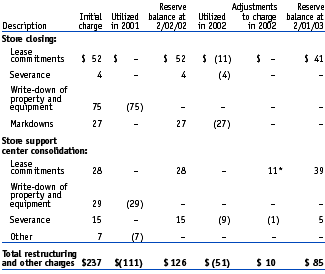 company had $42 of reserves remaining at February 1, 2003, primarily for long-term lease commitments that will be utilized in 2003 and thereafter. The company believes that remaining reserves at February 1, 2003 are reasonable estimates of what is required to complete all remaining initiatives.