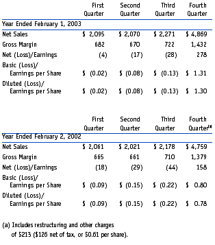 Quarterly Financial Data
