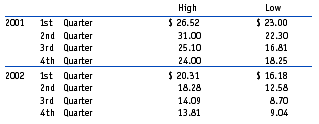 The company has not paid any cash dividends, however, the Board of Directors of the company periodically reviews the policy. The company had approximately 30,736 Stockholders of Record on March 12, 2003. ![]() |