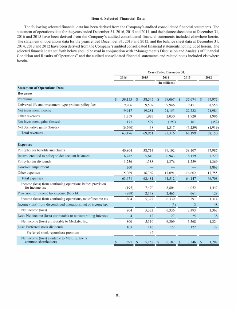 6. Selected Financial Data