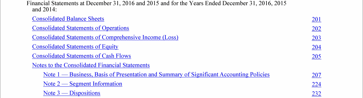 Click to view Report of Independent Registered Public Accounting Firm Click to view Report of Independent Registered Public Accounting Firm Click to view Report of Independent Registered Public Accounting Firm Click to view Consolidated Balance Sheets Click to view Consolidated Statements of Operations Click to view Consolidated Statements of Comprehensive Income (Loss) Click to view Consolidated Statements of Equity Click to view Consolidated Statements of Cash Flows Click to view Notes to the Consolidated Financial Statements Click to view Note 1 Click to view Note 2 Click to view Note 3 Click to view Consolidated Balance Sheets Click to view Consolidated Statements of Operations Click to view Consolidated Statements of Comprehensive Income (Loss) Click to view Consolidated Statements of Equity Click to view Consolidated Statements of Cash Flows Click to view Notes to the Consolidated Financial Statements Click to view Note 1 Click to view Note 2 Click to view Note 3 Click to view Consolidated Balance Sheets Click to view Consolidated Statements of Operations Click to view Consolidated Statements of Comprehensive Income (Loss) Click to view Consolidated Statements of Equity Click to view Consolidated Statements of Cash Flows Click to view Notes to the Consolidated Financial Statements Click to view Note 1 Click to view Note 2 Click to view Note 3 Click to view Note 4 Click to view Note 5 Click to view Note 6 Click to view Note 7 Click to view Note 8 Click to view Note 9 Click to view Note 10 Click to view Note 11 Click to view Note 12 Click to view Note 13 Click to view Note 14 Click to view Note 4 Click to view Note 5 Click to view Note 6 Click to view Note 7 Click to view Note 8 Click to view Note 9 Click to view Note 10 Click to view Note 11 Click to view Note 12 Click to view Note 13 Click to view Note 14 Click to view Note 4 Click to view Note 5 Click to view Note 6 Click to view Note 7 Click to view Note 8 Click to view Note 9 Click to view Note 10 Click to view Note 11 Click to view Note 12 Click to view Note 13 Click to view Note 14 Click to view Note 14 Click to view Note 15 Click to view Note 16 Click to view Note 17 Click to view Note 18 Click to view Note 19 Click to view Note 20 Click to view Note 21 Click to view Note 22 Click to view Note 23 Click to view Note 14 Click to view Note 15 Click to view Note 16 Click to view Note 17 Click to view Note 18 Click to view Note 19 Click to view Note 20 Click to view Note 21 Click to view Note 22 Click to view Note 23 Click to view Note 14 Click to view Note 15 Click to view Note 16 Click to view Note 17 Click to view Note 18 Click to view Note 19 Click to view Note 20 Click to view Note 21 Click to view Note 22 Click to view Note 23 Click to view Schedule I Click to view Schedule II Click to view Schedule III Click to view Schedule IV Click to view Schedule I Click to view Schedule II Click to view Schedule III Click to view Schedule IV Click to view Schedule I Click to view Schedule II Click to view Schedule III Click to view Schedule IV Click to view Report of Independent Registered Public Accounting Firm Click to view Consolidated Balance Sheets Click to view Consolidated Statements of Operations Click to view Consolidated Statements of Comprehensive Income (Loss) Click to view Consolidated Statements of Equity Click to view Consolidated Statements of Cash Flows Click to view Notes to the Consolidated Financial Statements Click to view Note 1 Click to view Note 2 Click to view Note 3 Click to view Note 4 Click to view Note 5 Click to view Note 6 Click to view Note 7 Click to view Note 8 Click to view Note 9 Click to view Note 10 Click to view Note 11 Click to view Note 12 Click to view Note 13 Click to view Note 14 Click to view Note 14 Click to view Note 15 Click to view Note 16 Click to view Note 17 Click to view Note 18 Click to view Note 19 Click to view Note 20 Click to view Note 21 Click to view Note 22 Click to view Note 23 Click to view Schedule I Click to view Schedule II Click to view Schedule III Click to view Schedule IV Click to view Report of Independent Registered Public Accounting Firm Click to view Consolidated Balance Sheets Click to view Consolidated Statements of Operations Click to view Consolidated Statements of Comprehensive Income (Loss) Click to view Consolidated Statements of Equity Click to view Consolidated Statements of Cash Flows Click to view Notes to the Consolidated Financial Statements Click to view Note 1 Click to view Note 2 Click to view Note 3 Click to view Note 4 Click to view Note 5 Click to view Note 6 Click to view Note 7 Click to view Note 8 Click to view Note 9 Click to view Note 10 Click to view Note 11 Click to view Note 12 Click to view Note 13 Click to view Note 14 Click to view Note 14 Click to view Note 15 Click to view Note 16 Click to view Note 17 Click to view Note 18 Click to view Note 19 Click to view Note 20 Click to view Note 21 Click to view Note 22 Click to view Note 23 Click to view Schedule I Click to view Schedule II Click to view Schedule III Click to view Schedule IV
