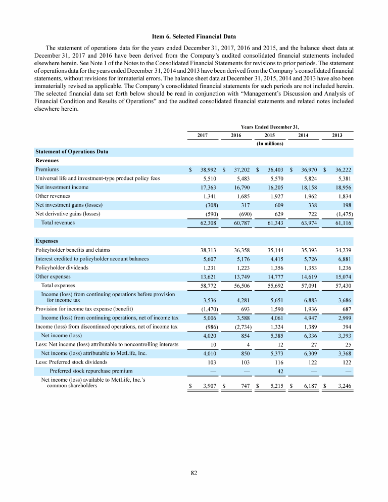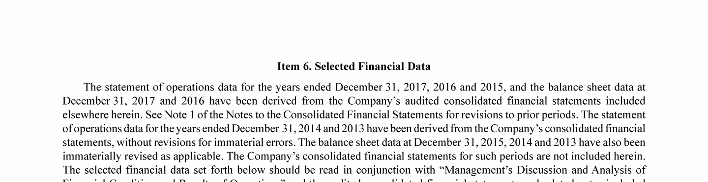 6. Selected Financial Data