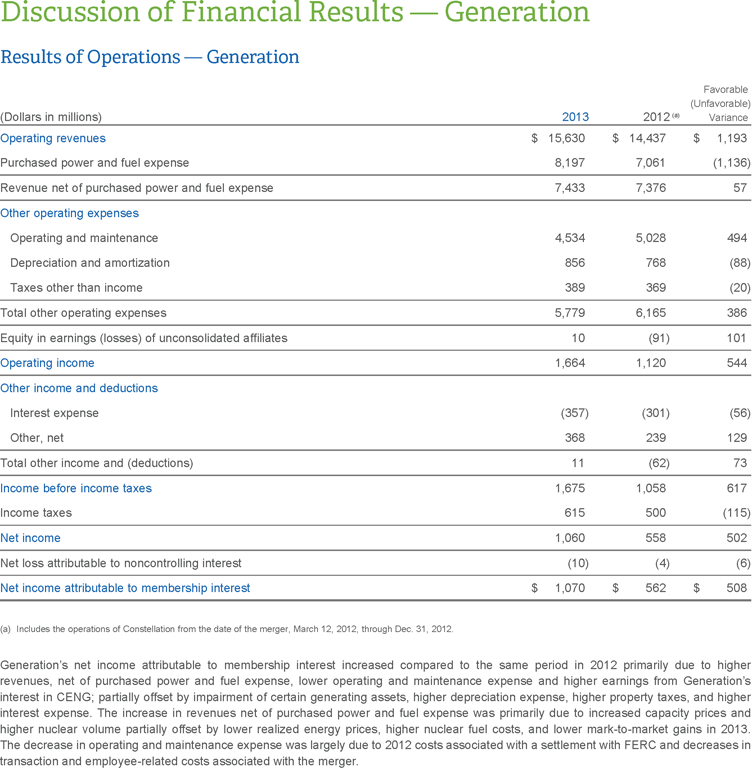 Financial Results – Exelon - Discussion of Financial