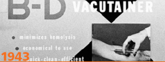 Over its first four decades, BD made tremendous strides in the art of injection. In the 1940s, the Company began its focus on improving the quality of specimen collection, and in doing so laid the foundation for todays BD Vacutainer family of products.