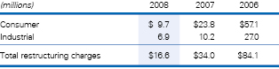 The business segment components of the restructuring charges recorded in 2008, 2007 and 2006 are as follows :