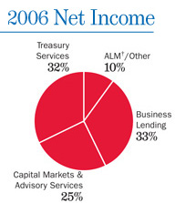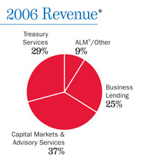 Clients include 98 percent of the U.S. Fortune 500, 80 percent of the Fortune Global 500 and one in three midsize companies in the United States. In 2006, Bank of America was the fifth-largest underwriter of U.S. debt, equity and equity-related securities. It ranks No. 1 in share of both U.S. and global treasury revenues. GCIB businesses also include the leading bank-owned asset-based lender and the No. 1 provider of financial services to commercial real estate businesses.